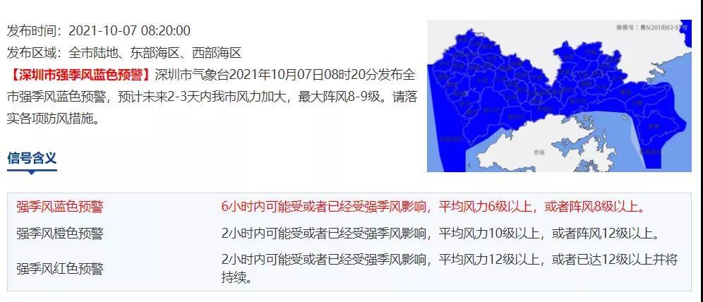 所以,深圳現(xiàn)已發(fā)布的強(qiáng)季風(fēng)藍(lán)色預(yù)警,表示6小時(shí)內(nèi)可能受或者已經(jīng)受強(qiáng)季風(fēng)影響,平均風(fēng)力6級(jí)以上,或者陣風(fēng)8級(jí)以上。