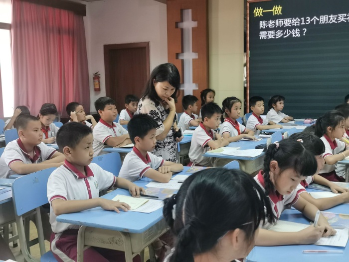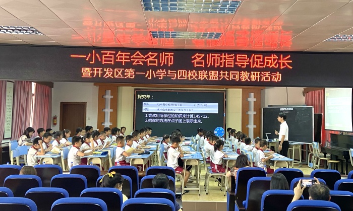 承擔(dān)此次活動(dòng)的授課教師和學(xué)生是來(lái)自開(kāi)發(fā)區(qū)第一小學(xué)陳開(kāi)明老師和四年級(jí)5班的學(xué)生。陳老師在備課組成員的幫助下不斷調(diào)整教學(xué)方法,在前期多次試教中完善課堂細(xì)節(jié),精準(zhǔn)把握課堂預(yù)設(shè)與教學(xué)效果。讓人眼前一亮的是,在此次展示的四年級(jí)上冊(cè)《三位數(shù)乘兩位數(shù)》課堂中,陳老師把數(shù)形結(jié)合、算式和豎式相結(jié)合,引導(dǎo)學(xué)生不僅要知道“怎么算”,還要明白“為什么這樣算”,突破常規(guī)算理;新穎的教學(xué)策略,既培養(yǎng)學(xué)生思考的學(xué)習(xí)習(xí)慣,更突出了學(xué)本教學(xué)的理念,同時(shí)能有效運(yùn)用舊知遷移完成新知學(xué)習(xí),達(dá)到了很好的教學(xué)效果。給在座的老師們呈現(xiàn)了一場(chǎng)知識(shí)的盛宴,帶來(lái)了很多啟發(fā)和思考。