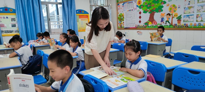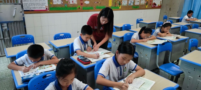 第一學(xué)時(shí)基本托管以自然班為主開展,均由擔(dān)任語文、數(shù)學(xué)、英語學(xué)科的老師負(fù)責(zé)。一、二年級(jí)以自主作業(yè)、適當(dāng)?shù)匕才澎柟叹毩?xí)為主,三至六年級(jí)以作業(yè)輔導(dǎo)、答疑解惑為主。全體教師在課后服務(wù)的時(shí)間與空間里,做到真誠(chéng)服務(wù)、耐心解惑,幫助孩子們高質(zhì)量地完成課后作業(yè)。孩子們?cè)谕瓿勺鳂I(yè)的過程中,遇到問題可以隨時(shí)舉手提問,老師們面對(duì)面進(jìn)行輔導(dǎo)解答。遇到非學(xué)科的專業(yè)性問題,孩子們?cè)谡鞯美蠋煹耐庵拢梢哉?qǐng)教班級(jí)里的“小老師”,也可以輕輕地走到其他班級(jí),向?qū)?yīng)學(xué)科的老師請(qǐng)教,確保孩子們能在有疑問時(shí)及時(shí)地解決困難。在這樣的學(xué)習(xí)氛圍里,孩子們的學(xué)習(xí)欲望更強(qiáng)烈了,學(xué)習(xí)效率和質(zhì)量也更高了。
