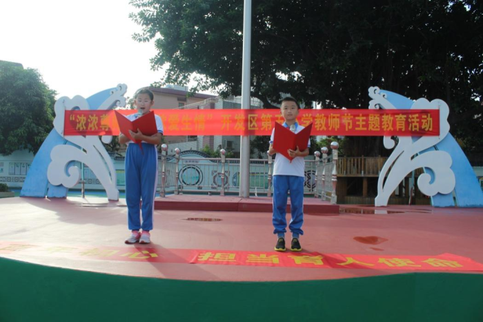 金秋九月,碩果飄香。為了慶祝第37個(gè)教師節(jié),弘揚(yáng)中華民族傳統(tǒng)美德,營造全校尊師重教、尊師愛生的濃厚氛圍,9月10日上午,開發(fā)區(qū)第五小學(xué)全校師生在操場(chǎng)開展以“濃濃尊師意,款款愛生情”為主題的教育活動(dòng)。