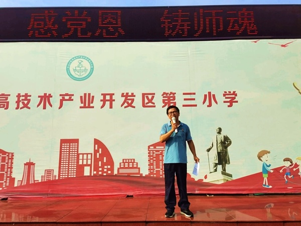 接著,三小黨支部書記劉光旗校長作了熱情洋溢的講話。他高度肯定和贊揚全體教師對開發(fā)區(qū)三小教育教學發(fā)展的付出,表示任何人的成長成才,社會的每一次進步,都離不開老師的辛勞和奉獻。他呼吁全體教職工要向時代楷模黃大年老師學習,時刻牢記“為黨育人、為國育才”的使命,在今后的工作中立足各自的崗位,齊心協(xié)力,積極進取,培養(yǎng)更多能夠擔當民族復興大任的時代新人。