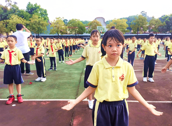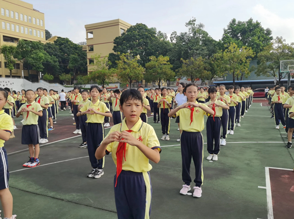 最后,隊員代表獻上節(jié)日的贊歌——《感師恩,念師情》,全體少先隊員獻上手語操《聽我說謝謝你》,來表達自己對老師們的感恩之情??粗爢T們專注的神情,笑盈盈的臉蛋,每位老師心里滿是溫馨和感動,濃厚的感恩氣氛洋溢在整個校園。