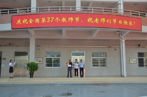 慶?;顒?dòng)上,主持人羅曉玲老師帶著全體同學(xué)向全體老師送上了節(jié)日的問(wèn)候與美好的祝福。接著,學(xué)校黨支部書(shū)記鄭碩果同志對(duì)學(xué)?!皫煹驴!睆埿∝S老師、甘允恒老師頒發(fā)了榮譽(yù)證書(shū),并向全體師生介紹了兩位優(yōu)秀教師的先進(jìn)事跡,號(hào)召大家向他們學(xué)習(xí)。