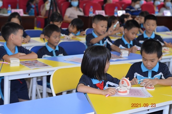 為更好地貫徹落實《學(xué)校衛(wèi)生工作條例》《健康口腔行動方案(2019-2025年)》和《健康中山行動(2020-2030年)》等有關(guān)要求,提高小學(xué)生口腔健康素養(yǎng)水平,降低兒童齲齒發(fā)生率,9月23日下午,2021年中山市教育系統(tǒng)“全國愛牙日”現(xiàn)場宣傳活動暨2021年小學(xué)生口腔健康服務(wù)項目正式啟動,本次啟動儀式由中山市教育和體育局主辦,中山市中小學(xué)衛(wèi)生保健所、南區(qū)馬嶺小學(xué)承辦。中山市教育和體育局三級調(diào)研員容彤、中山市中小學(xué)衛(wèi)生保健所黃思哲所長、南區(qū)教育和體育事務(wù)中心劉敏斯副主任、有關(guān)鎮(zhèn)街衛(wèi)生專干、各項目學(xué)校項目負(fù)責(zé)人、馬嶺小學(xué)二年級的師生一同參加了此次活動。