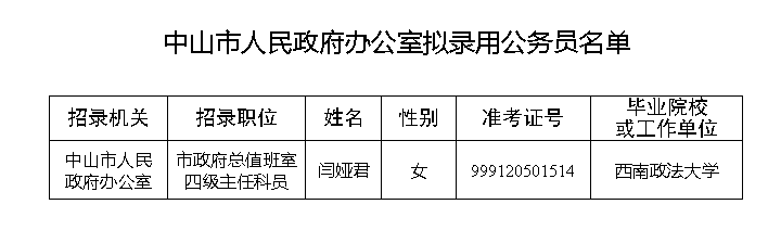 根據(jù)《中華人民共和國公務(wù)員法》《公務(wù)員錄用規(guī)定》《廣東省公務(wù)員錄用辦法》等有關(guān)規(guī)定,按照《廣東省2021年考試錄用公務(wù)員工作實(shí)施方案》要求,經(jīng)筆試、面試、體檢和考察等程序,擬錄用閆婭君同志為我辦公務(wù)員(情況附后)。