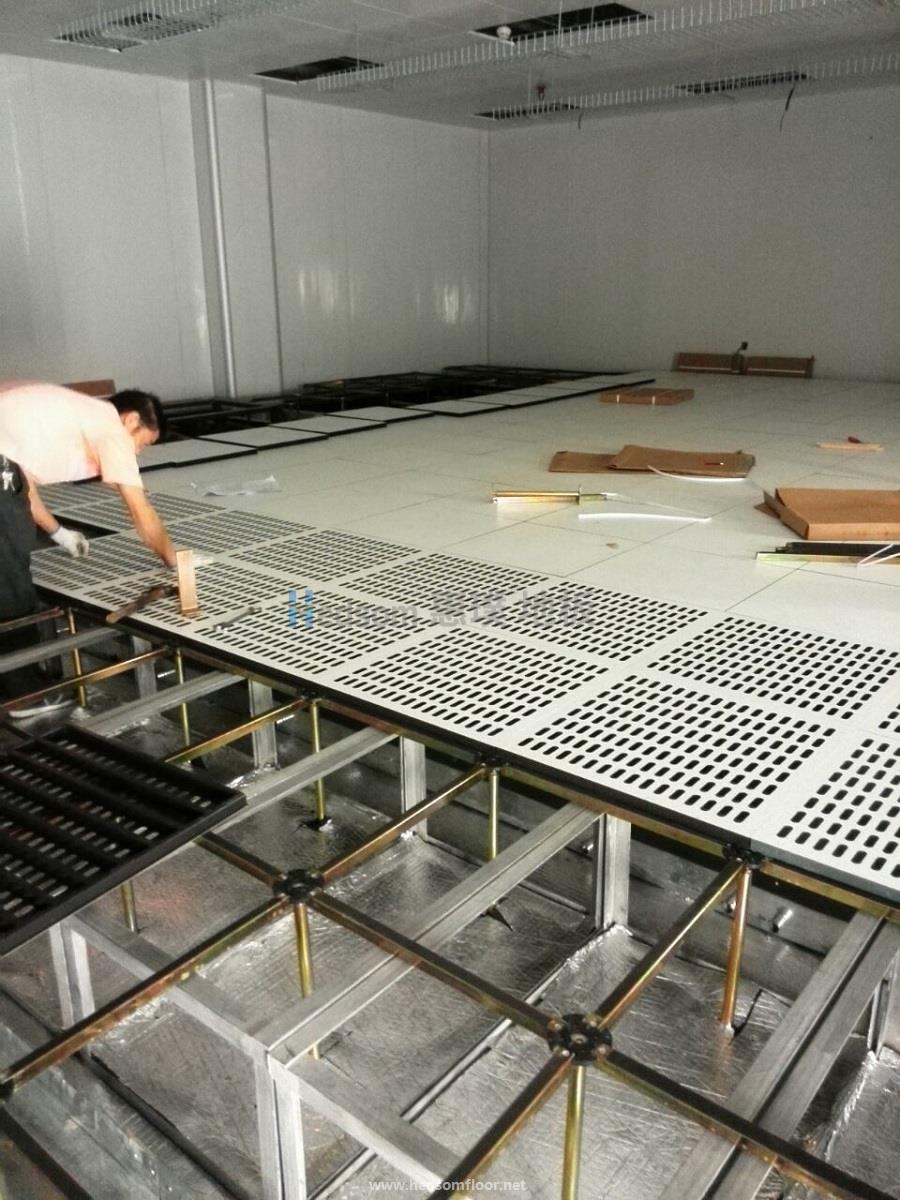 其結(jié)構(gòu)組成與防靜電全鋼通路活動地板類似,但內(nèi)腔是空的,無發(fā)泡水泥填料; 地板的上下鋼板和上表面由面均沖制有通風(fēng)孔,表層粘貼各種HPL或PVC面。通風(fēng)活動地板與全鋼通路活動地板配套使用,用于地板下部有通風(fēng)要求的場所。通風(fēng)活動地板按通風(fēng)率大小分有17%--50%,普通通風(fēng)活動地板的通風(fēng)率為20%。且可配制通風(fēng)量調(diào)節(jié)器,配制有通風(fēng)量調(diào)節(jié)器的通風(fēng)活動地板,其通風(fēng)量可以從0~20%范圍內(nèi)任意調(diào)節(jié),通風(fēng)率高的主要用于要求較高的潔凈廠房。