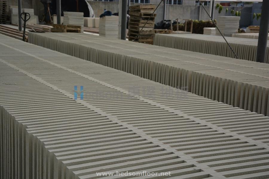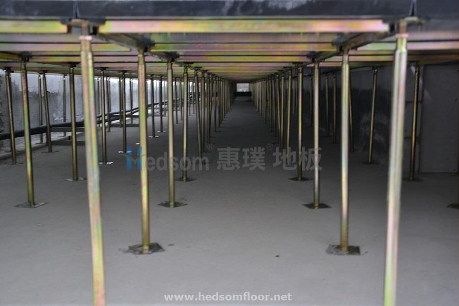 硫酸鈣板防靜電HPL地板用圓頭支架支撐,橫梁和支架上部都有PVC墊片,有效降低噪音。地板的完成面可以從100mm到2000mm